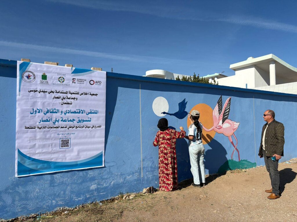 في إطار تنفيذ مشروعه – المنتدى الاقتصادي و الثقافي المخصص لتثمين و تسويق بلدية بني أنصار – بتمويل من الوكالة الفرنسية للتنمية (Expertise France) أشرفت جمعية الإخلاص للتنمية المستدامة على إطلاق أنشطة الجداريات الجدارية على واجهات معاهد مدرسة بني أنصار